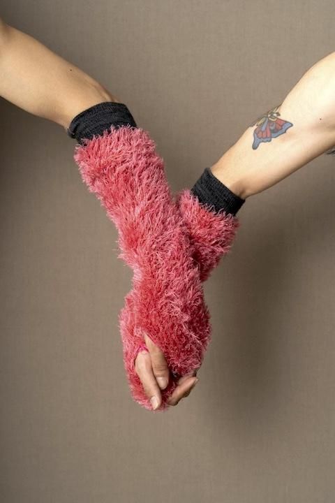 長さもしっかりとあるので、肘下までしっかりとあたたかく、たるませることで雰囲気を変え楽しむこともできる。