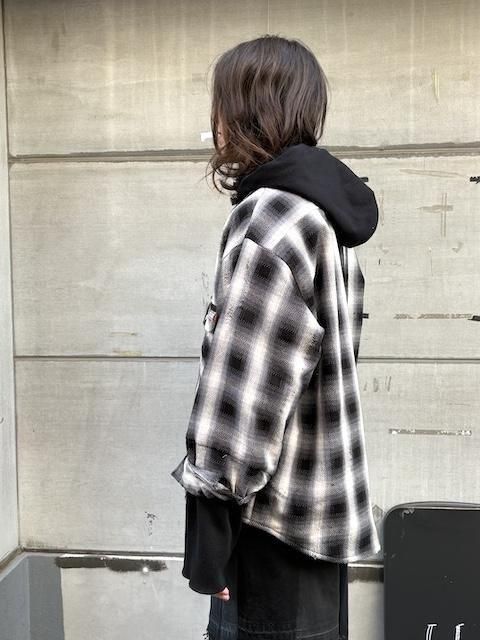 スウェット素材のフードと、袖口にはフィンガーホール付きのサーマル袖が付き、重ね着をしているような見た目となり、中間アウターのメインアイテムとなる。